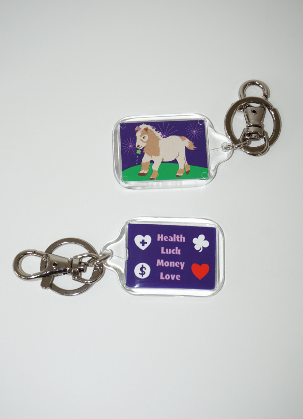 행운을 가져다주는 포니가 새겨진 아크릴 액자 키링 입니다.