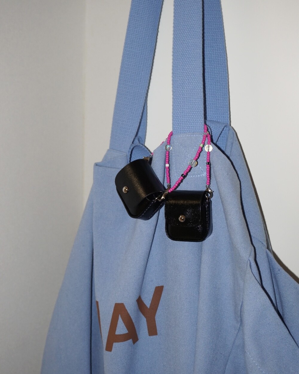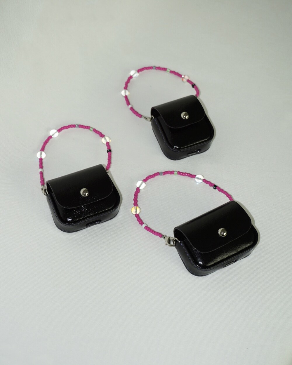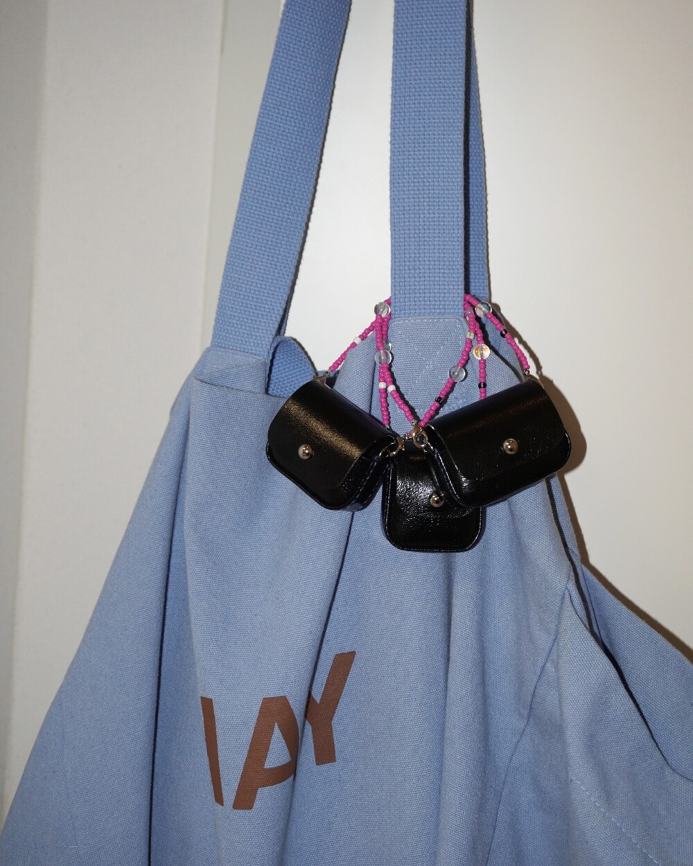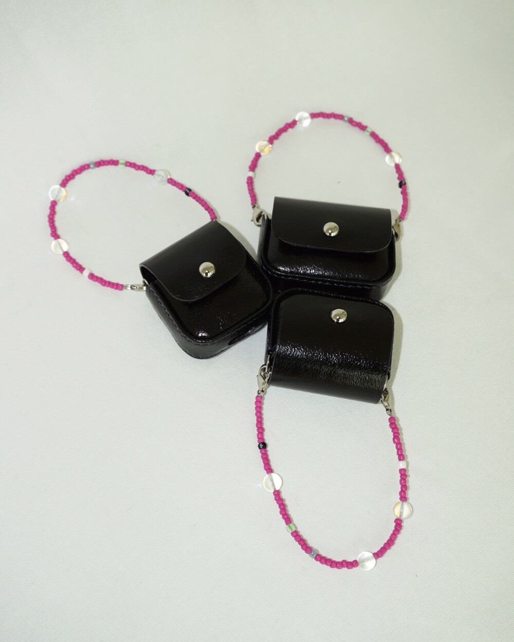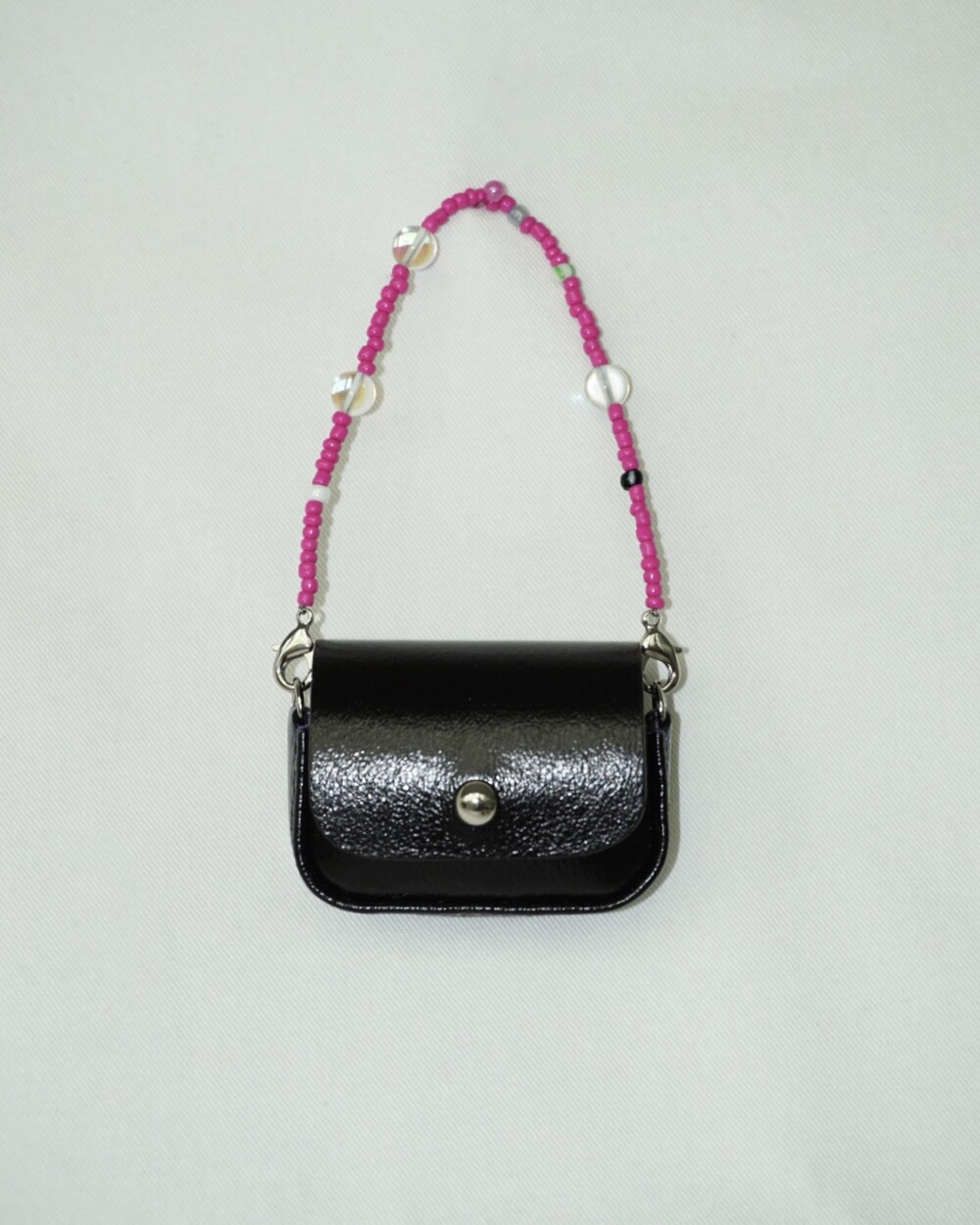 비즈로 제작된 스트랩이 달린 미니백 같은 모양이 특징입니다. (스트랩은 탈부착이 가능합니다.)
