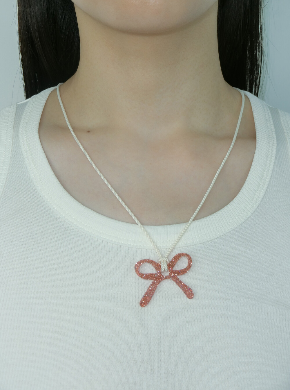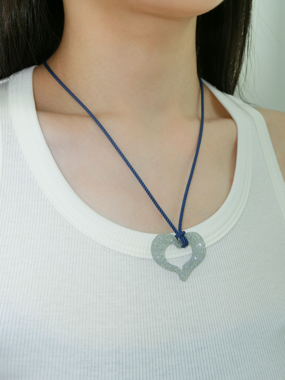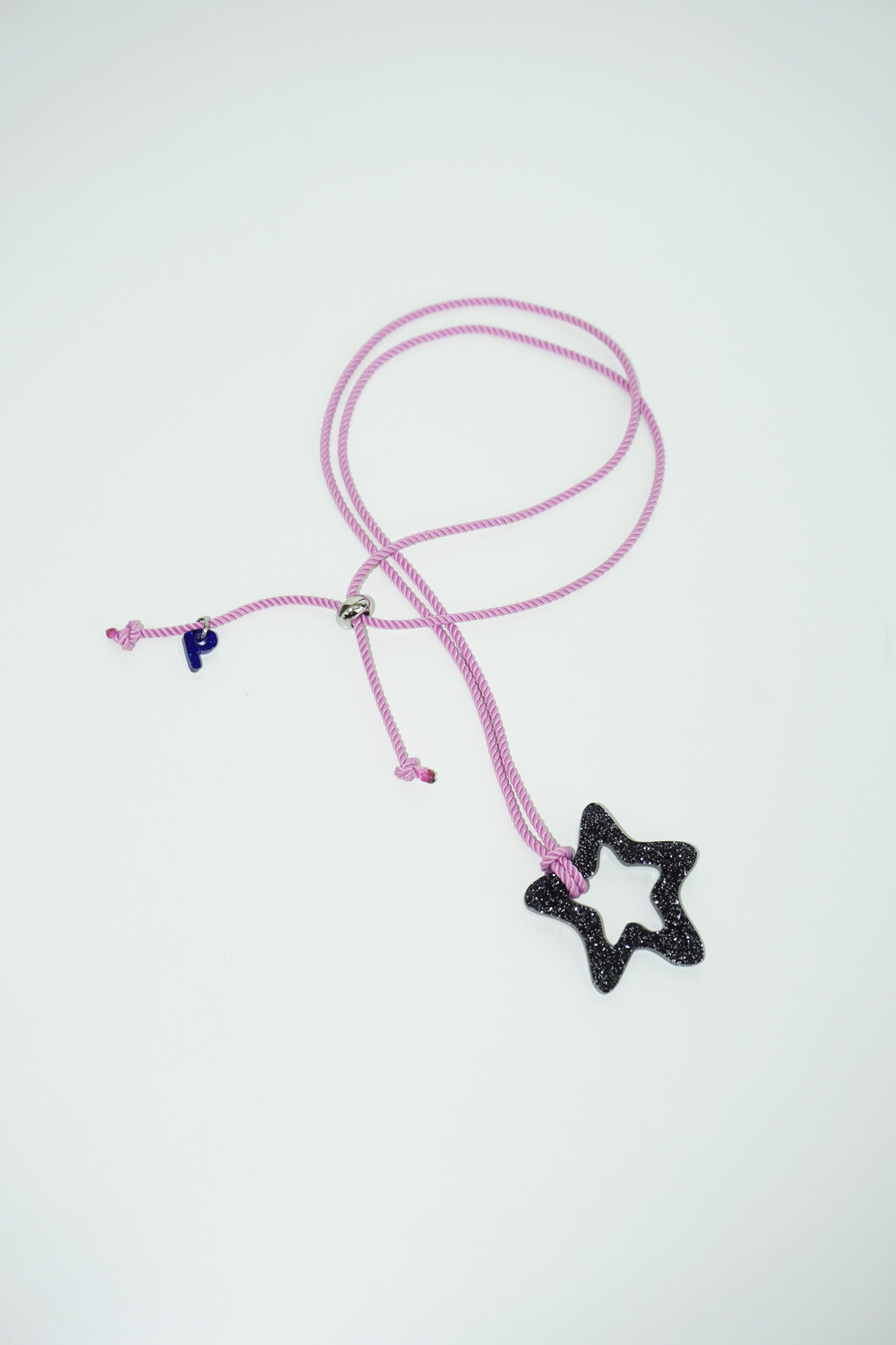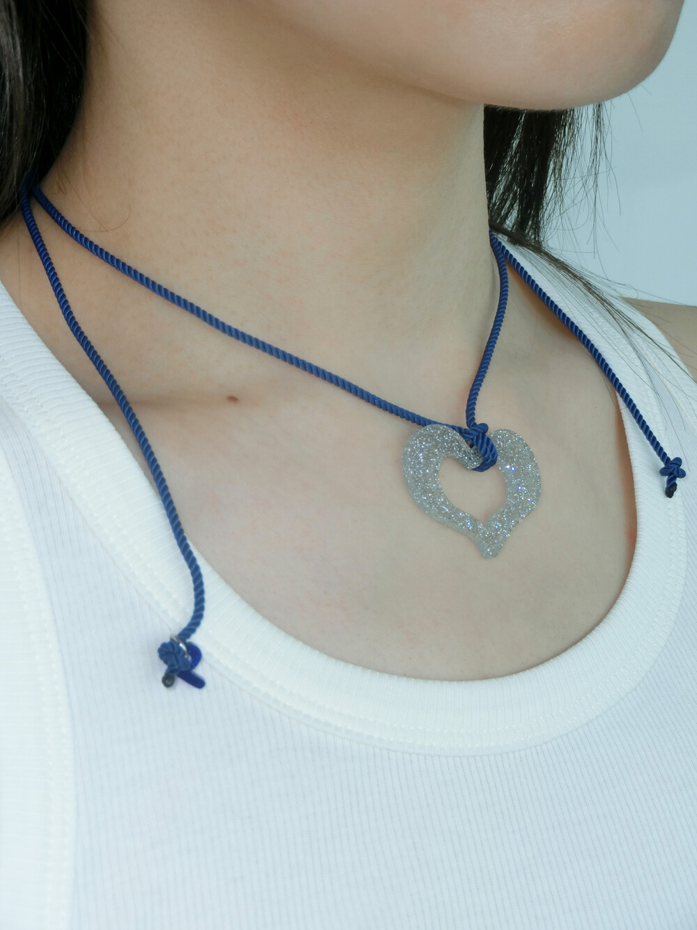 가벼운 소재의 글리터 아크릴로 제작 된 끈 목걸이입니다. 길이 조절이 가능하여 다양하게 연출할 수 있습니다.