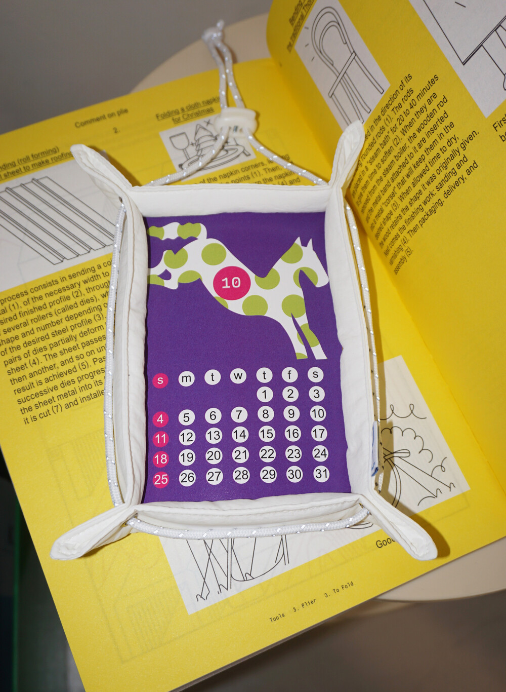 소프트한 원단으로 제작 된 액자 안에 10x15 사이즈의 종이 월력이 끼워져있는 형태입니다.