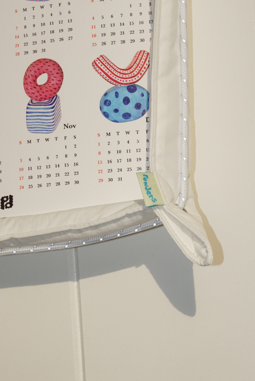 소프트한 원단으로 제작 된 액자 안에 B5 사이즈의 종이 달력이 끼워져있는 형태입니다.